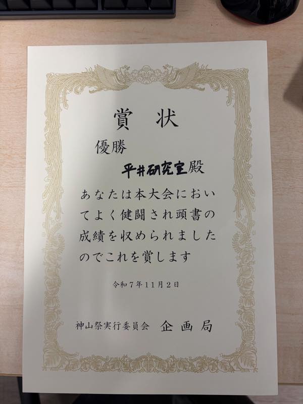 - 神山祭でのイベント参加&優勝(2025年11月2日)