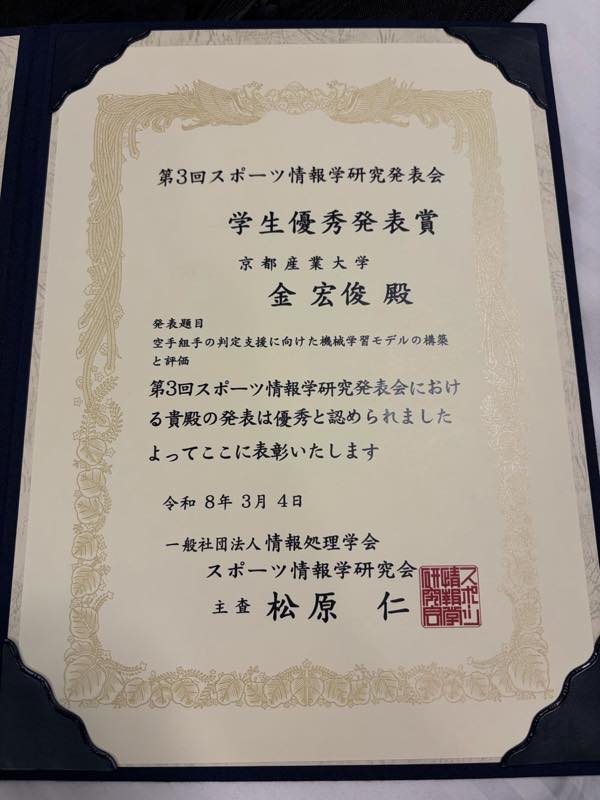 - 情報処理学会スポーツ情報学研究会での受賞式(2026年3月4日)